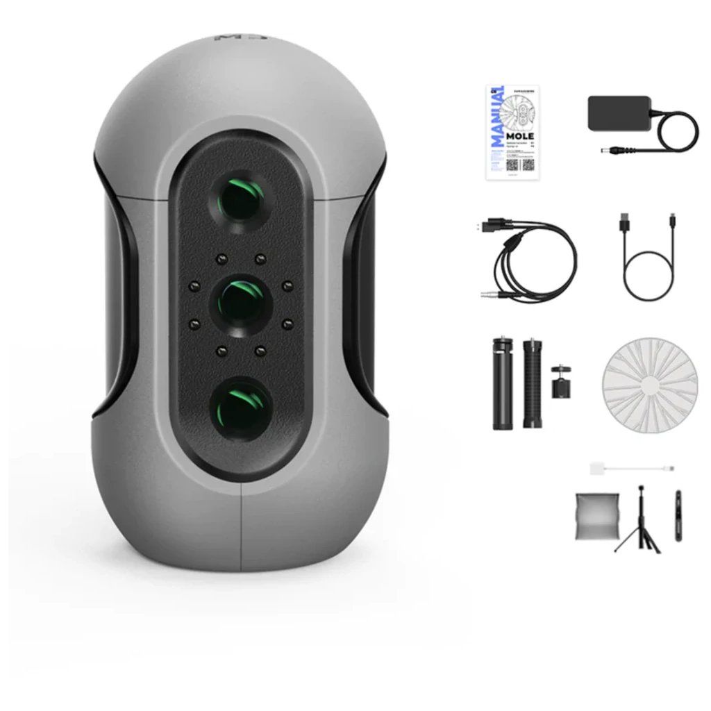 Kompaktný 3D skener Mole sa vyznačuje ergonomickým dizajnom, ktorý je ideálny pre ručný aj otočný režim. Skener je vybavený vnútornými ventilátormi s nízkou hlučnosťou, ktoré znižujú teplotu pre dlhší čas prevádzky.