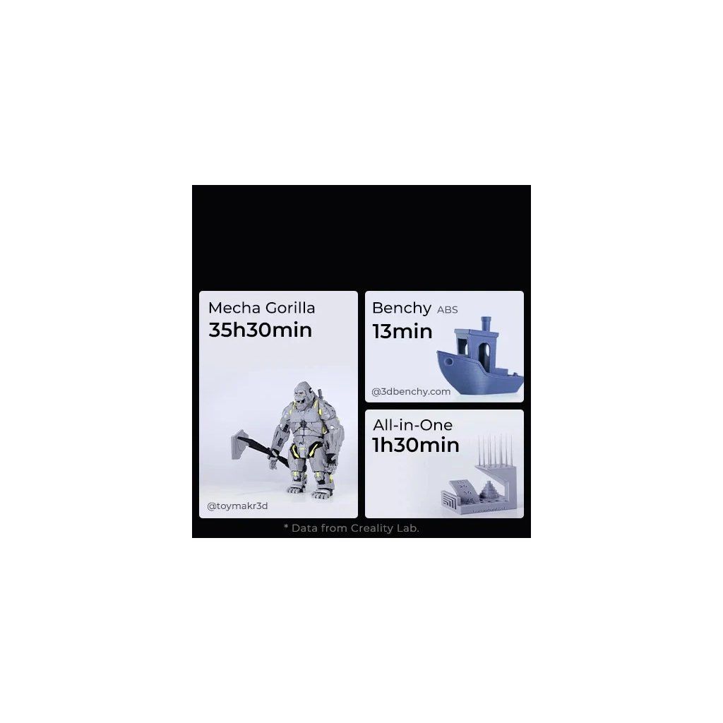 K1 Max svojou ohromujúcou rýchlosťou rozdúcha v ľuďoch zápal pre 3D tlač. Vysoká rýchlosť skracuje čas tlače a zvyšuje efektivitu. Pri rovnakom výkone spotrebuje menej energie, a preto je šetrnejší k životnému prostrediu. Najdôležitejšie je, že sa zameriava na čistú radosť z tvorby.
