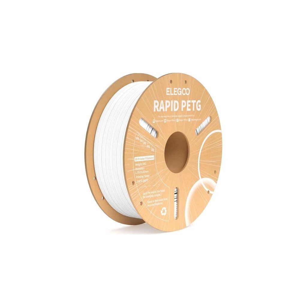 Pri tlači s použitím tohto filamentu sa úplne vyhnete problémom s upchávaním trysiek alebo bublinami na povrchu vytlačeného modelu. Okrem toho je univerzálne kompatibilný so všetkými bežnými 1,75 mm FDM 3D tlačiarňami, ako sú napríklad tlačiarne radu Neptune 3, Neptune 4 a ďalšie. V záujme ekologickej udržateľnosti sa všetky vlákna Elegoo RAPID PETG dodávajú s ekologickou kartónovou cievkou, ktorá sa rozkladá rýchlejšie ako plastové cievky. Cievka je vybavená tromi pozorovacími otvormi, takže môžete ľahkopozorovať zostávajúce vlákno a včas ho vymeniť.