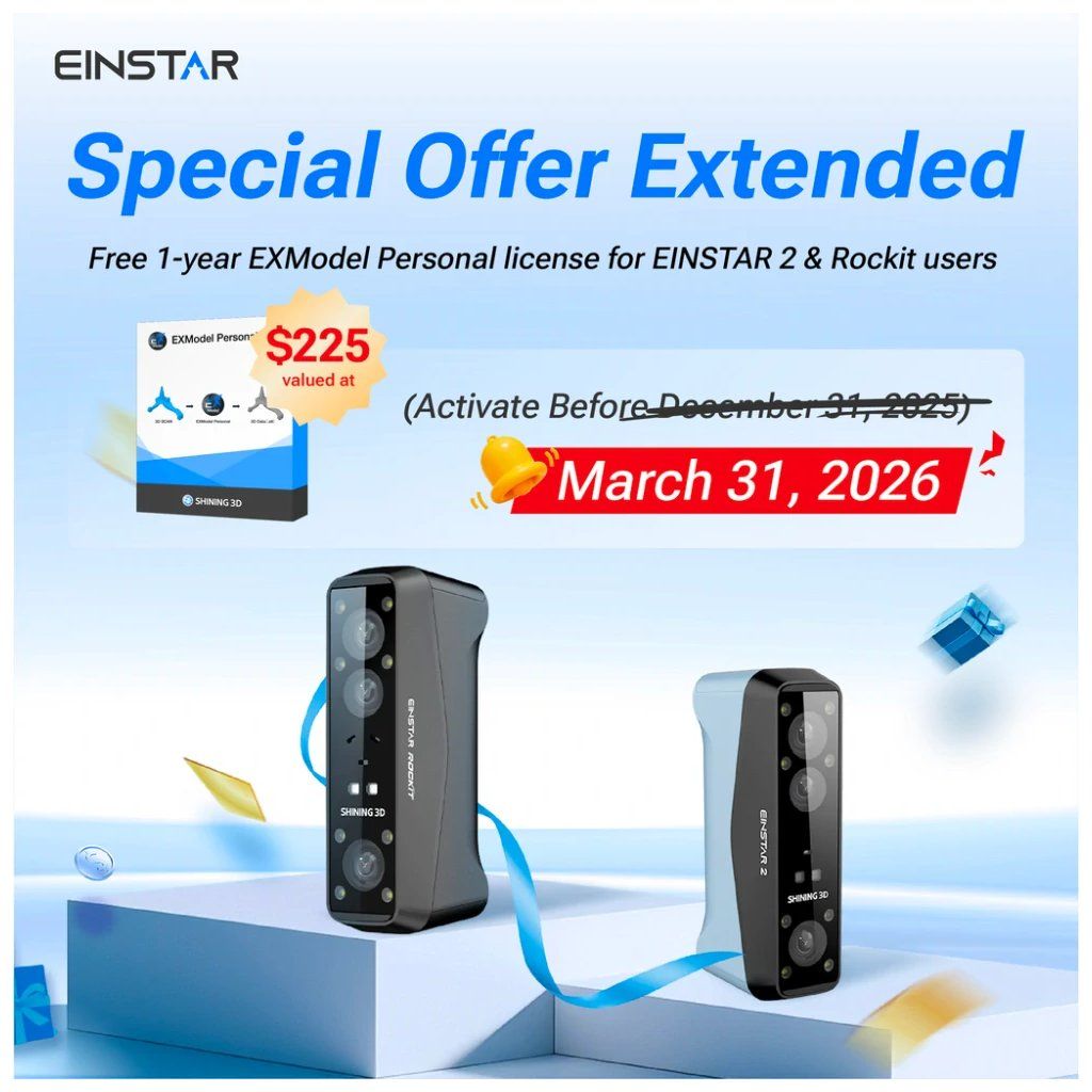 ► IR režim: ideálny na skenovanie veľkých modelov alebo celého tela pri rýchlosti až 20 snímok za sekundu. Vďaka zlepšenému rozlíšeniu kamery zachytáva Einstar 2 jasné údaje mračna bodov aj na čiernych alebo reflexných materiáloch - bez potreby matného spreja.