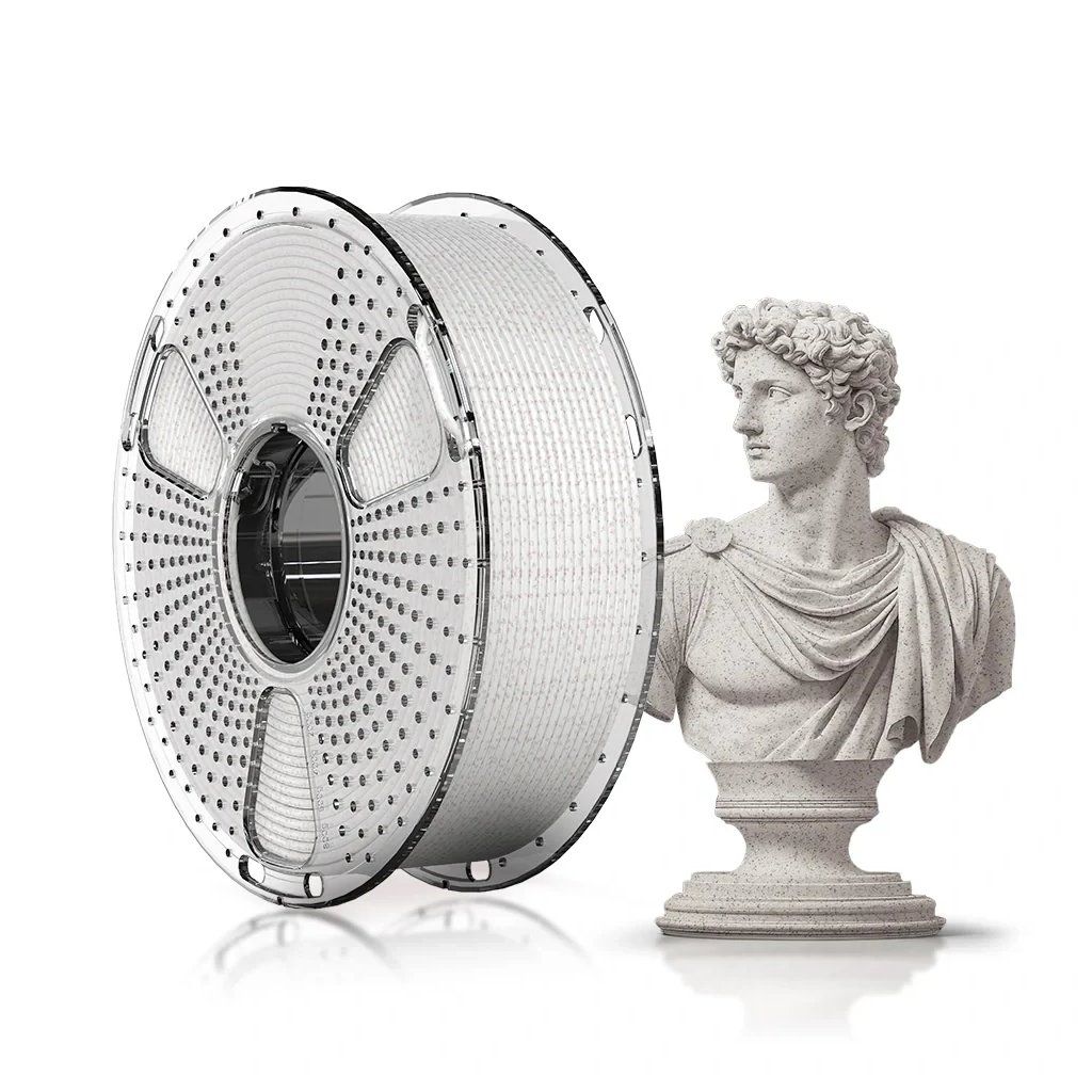 Vysokorýchlostné vlákno PLA Marble Filament vylepšené o častice podobné mramoru, ktoré vašim 3D výtlačkom dodá vzhľad a štruktúru skutočného mramoru.